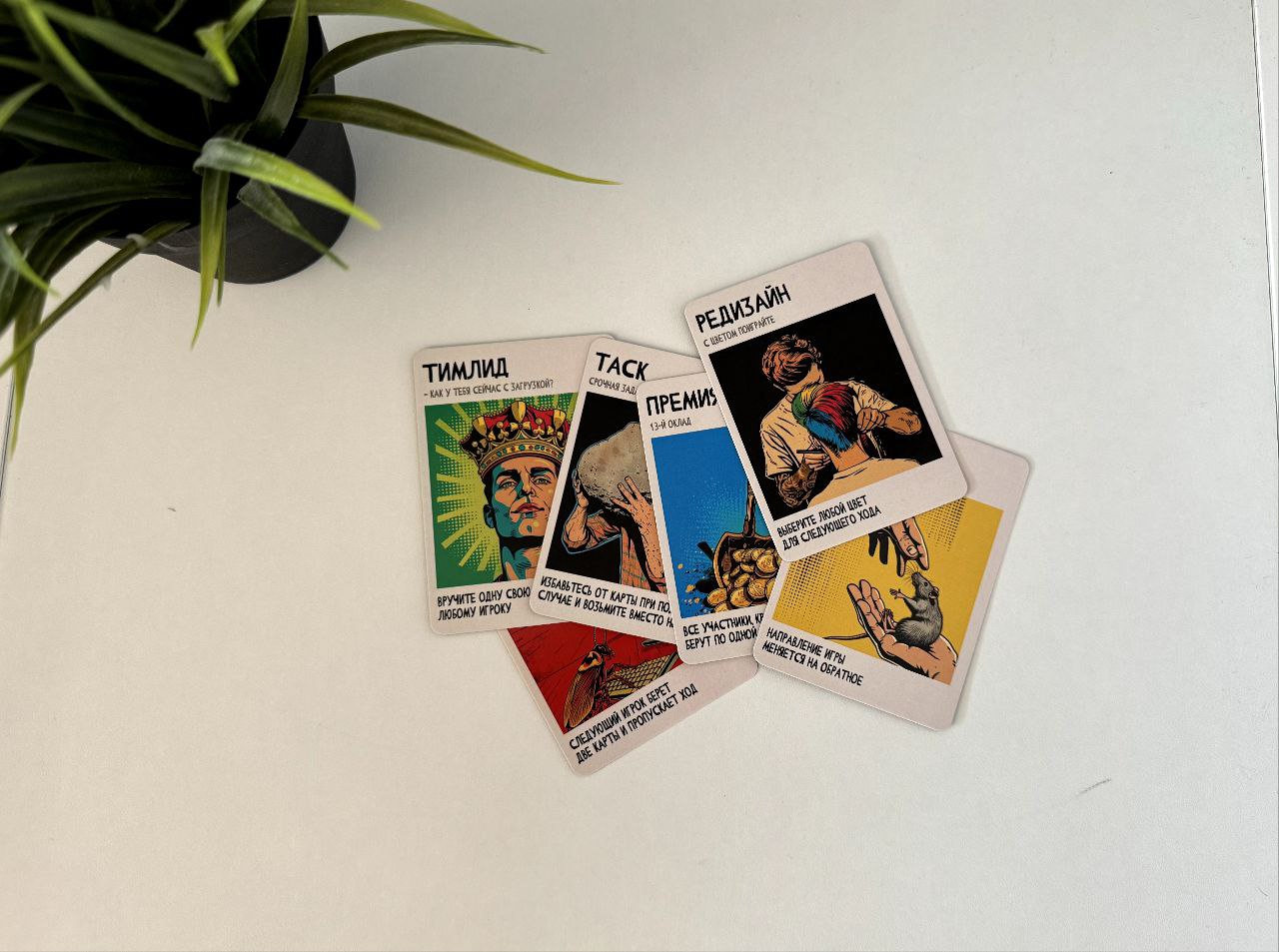 Интереснее всего играть в нее дружной компанией или продуктовой командой: это отличный способ провести время вместе и посмеяться. А еще игру можно взять в офис (только чтобы продакт не заметил)